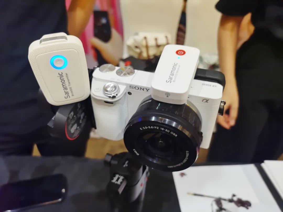 Saramonic枫笛设备体验区,Blink500 2.4GHz无线麦克风系统是“吸睛”老选手了,观众们迫不及待地上手玩了起来。